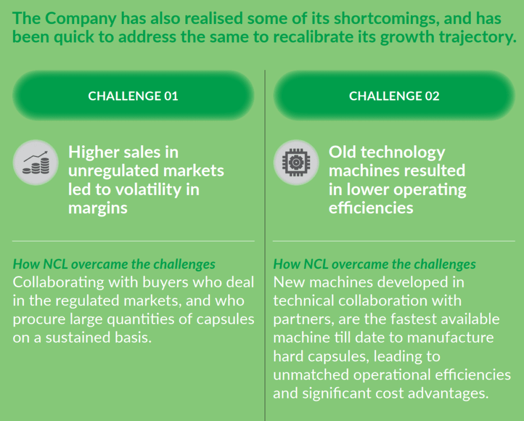 Natural Capsules (Mcap 370 Cr) was established in 1993 in Bangalore and in the year 2003 at Pondicherry by Mr. Sunil Mundra identifying a huge demand in the pharma industry. Natural Capsules Limited has a well-equipped modern manufacturing plant to manufacture Hard Gelatin Capsule shells, Hard Cellulose Capsule shells and Pharmaceutical Dosage Forms in Capsule Dosage Form.