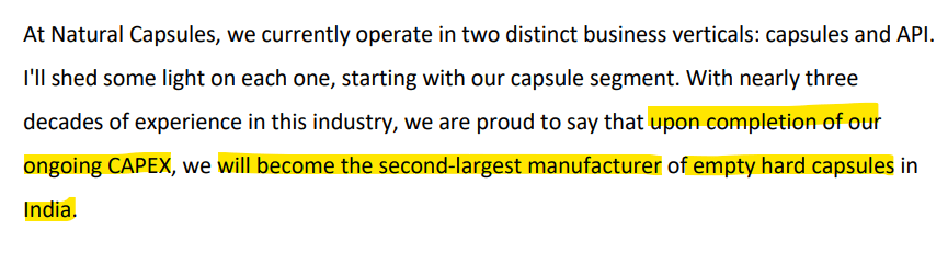 They anticipate becoming India’s second-largest manufacturer of empty hard capsules after completing their ongoing CAPEX