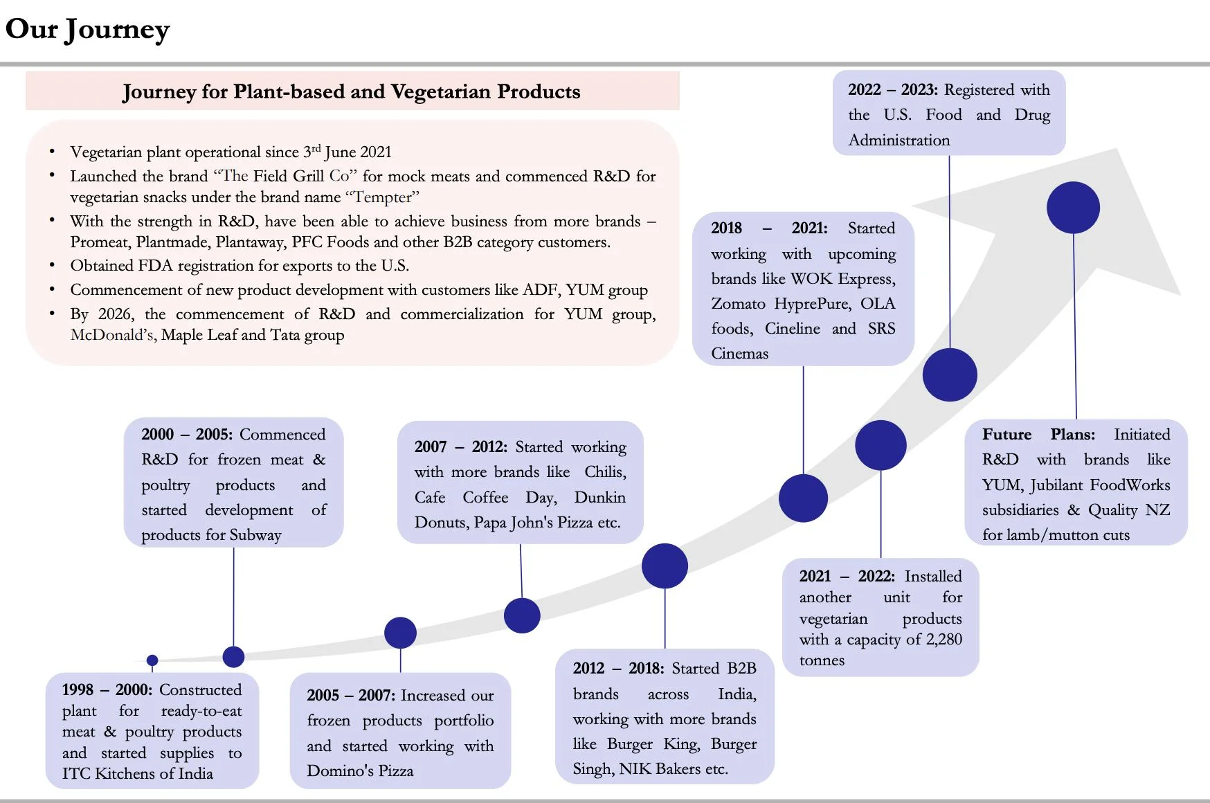A leading player in the frozen and ready-to-eat food industry, the company specializes in supplying high-quality meat and vegetarian products to major QSRs and food service brands. With strong industry experience, strategic partnerships, and expanding production capacity, it is well-positioned for growth in both domestic and export markets, focusing on innovation, efficiency, and premium product offerings.