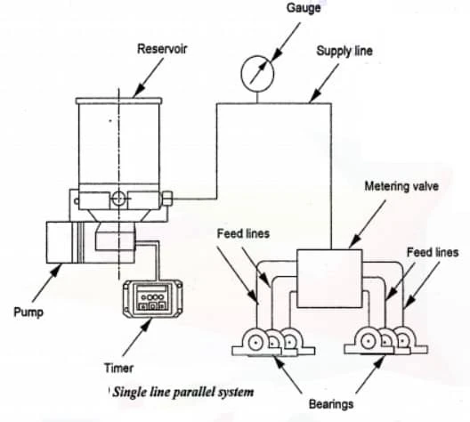 - Feed Lines: Connects metering valves/injectors to machine parts.
