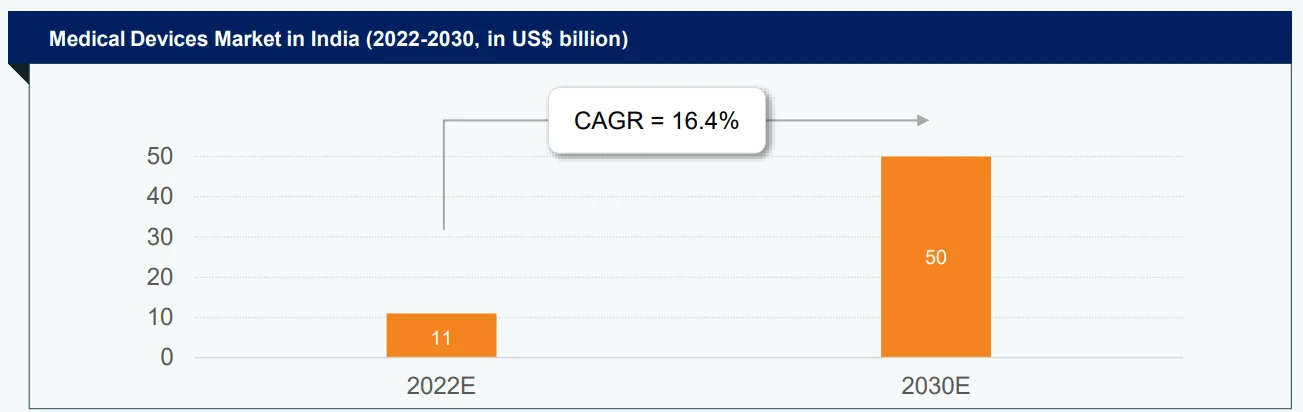 - So far, the PLI scheme for Medical Devices has approved 26 projects, with a total investment commitment of Rs. 1,200 crore (US$ 147 million). This aims to boost growth and innovation in the MedTech industry, positioning India as a global hub for manufacturing and innovation in the future.