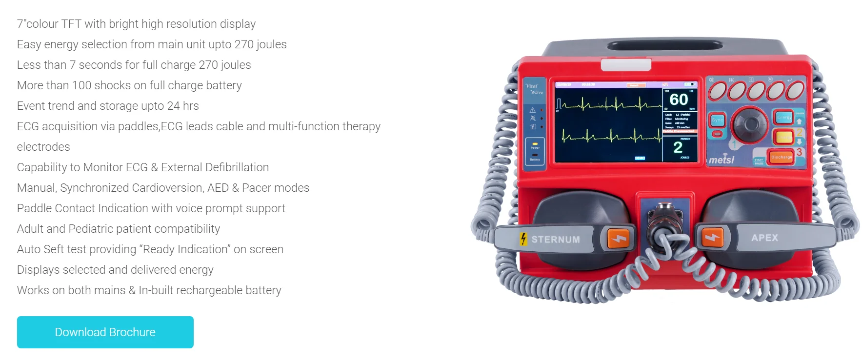 c. Defibrillator: Delivering an electric shock to the heart to restore normal rhythm in cases of cardiac arrest or life-threatening arrhythmias. They are used in emergencies such as in hospitals, ambulances, and public places.